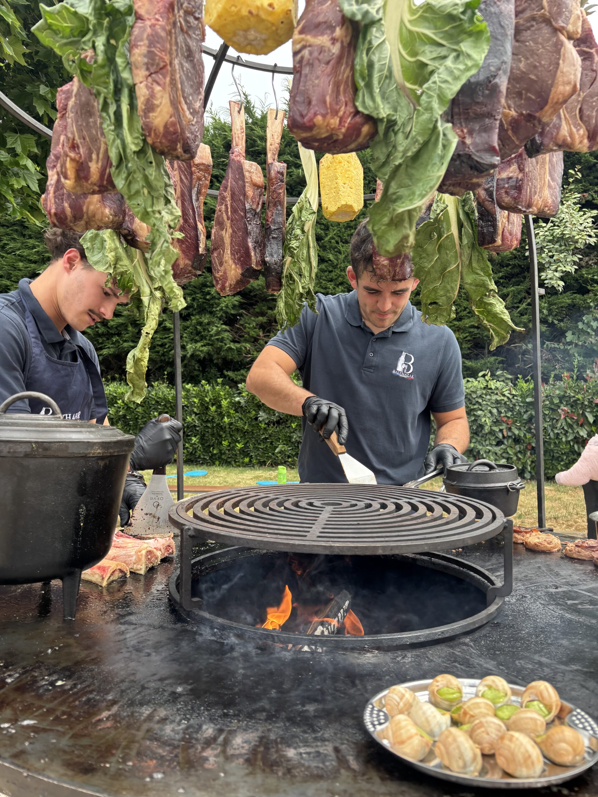 Ateliers culinaires autour du feu, idéals pour des cocktails d’entreprise, des vins d’honneur de mariage ou des événements privés.